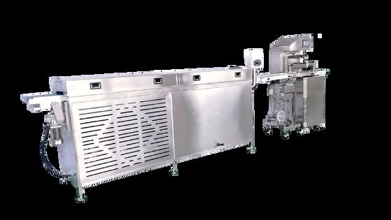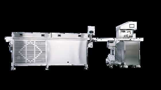 Встроенный охлаждающий туннель - ключ к эффективности. Он обеспечивает контролируемую, непрерывную среду охлаждения, позволяя изделиям из темперированного шоколада идеально застывать в течение нескольких минут. Это оптимизирует ваше производство, устраняет необходимость в отдельных станциях для темперирования и застывания и максимизирует производительность при небольших габаритах.