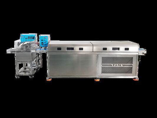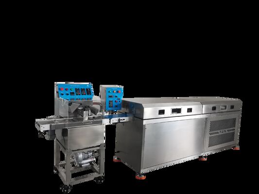 Он интегрируетФормирование мочи, покрытие шоколадом, охлаждение и автоматическая транспортировкав один непрерывный процесс, обеспечивающий однородное покрытие, стабильную структуру и высокую эффективность производства.